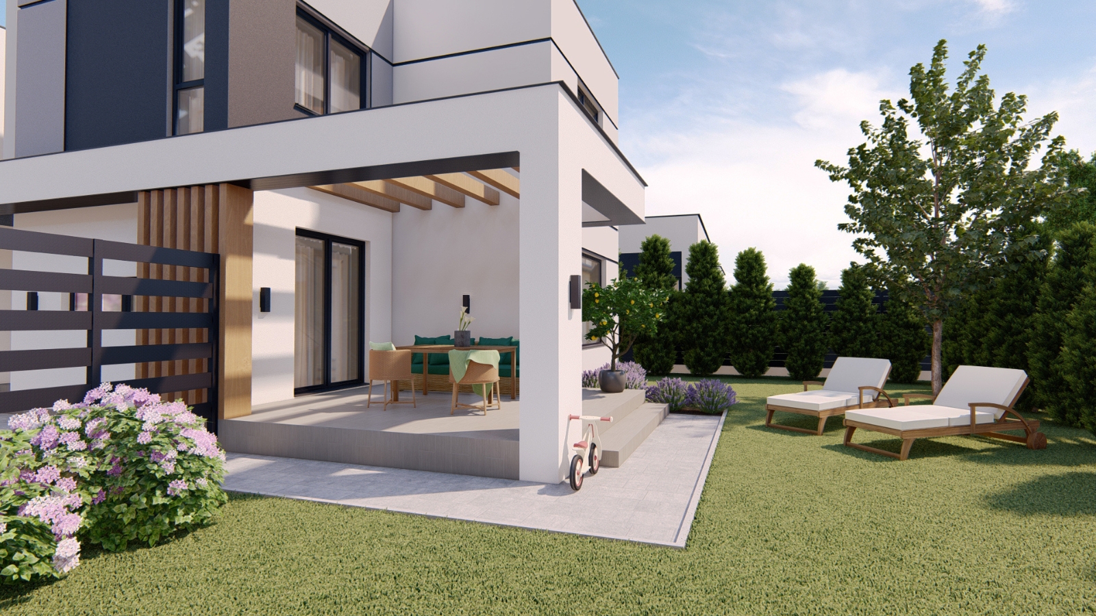 Etapa I va avea 56 de case de tip Duplex, situate pe 28 de parcele și o suprafață totală de 14532 mp de teren.